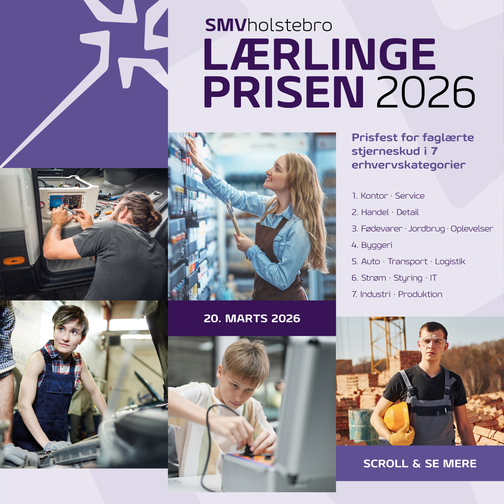SMVholstebros ”LÆRLINGEPRISEN 2026” fokuserer på faglærte stjerneskud, som udgør næste generation af arbejdskraft hos små og mellemstore virksomheder i Holstebro Kommune.